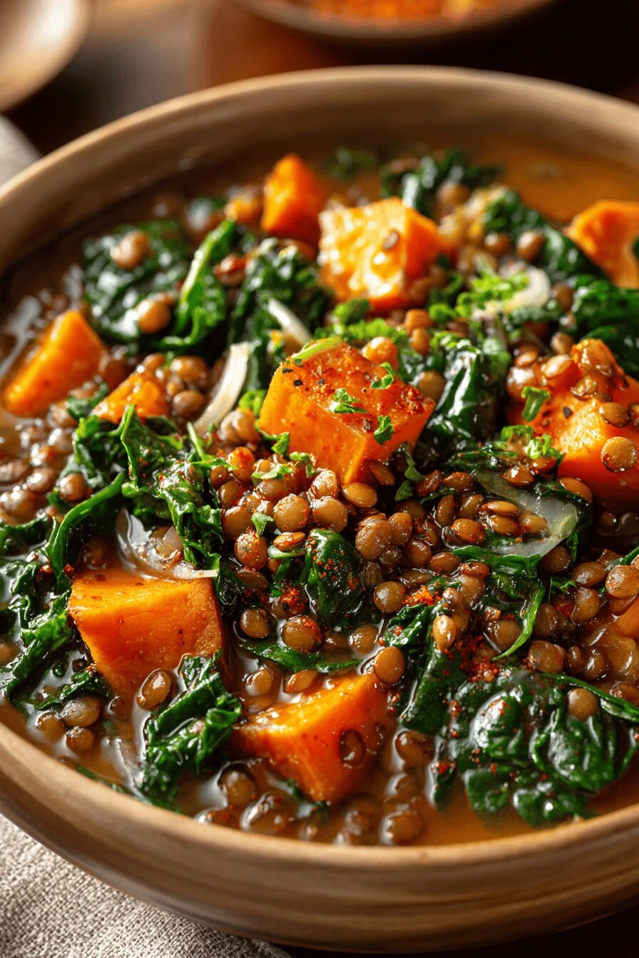 Healthy without tasting like you’re being punished. Green lentils hold their shape. Kale stays tender but doesn’t turn into nothing. The ginger and smoked paprika do the flavor work — no weird additives.