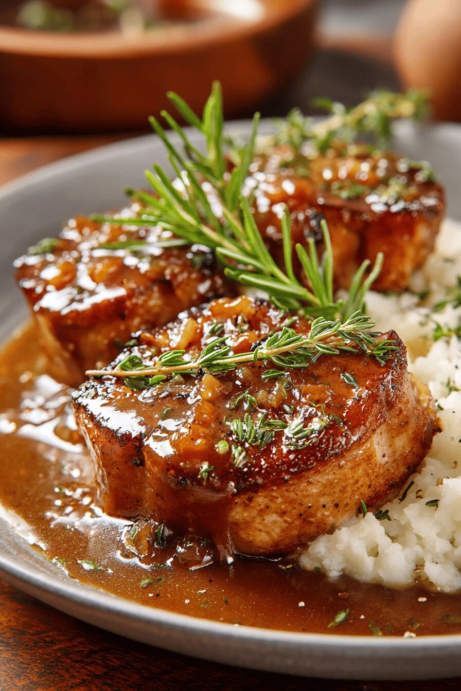 Thyme goes in if you’re using it. Nestle the pork back into the pan. Low heat. Simmer for maybe three minutes. Turn the medallions once so they soak up flavor on both sides. The sauce should stick to the back of a spoon by now. Not runny. Coat-like.