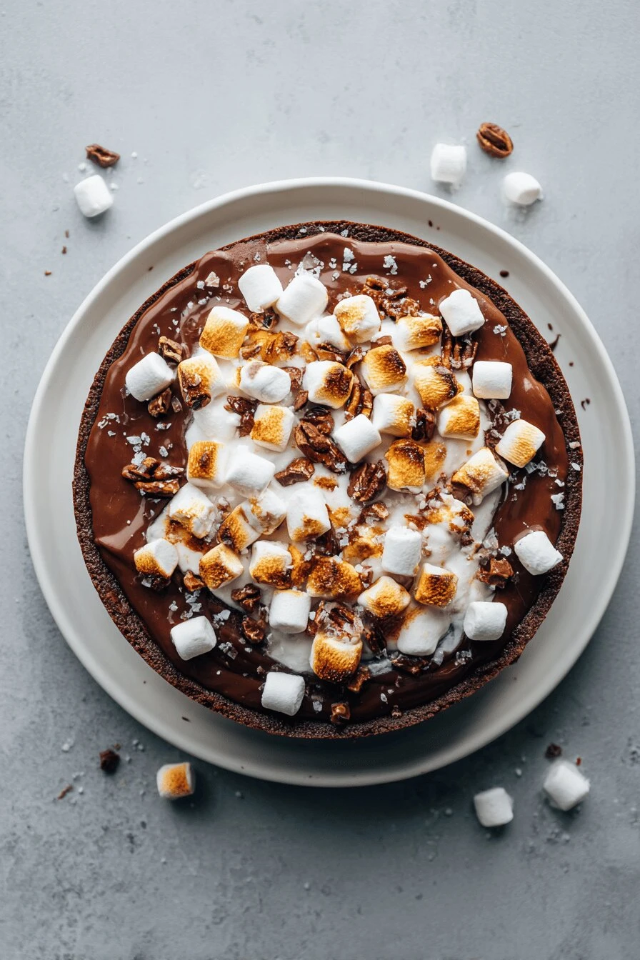 Toasted pecan halves—300 ml, which is about two cups before they’re done. Regular pecans work but won’t be the same. Heavy cream. 35% fat or close to it. Half-and-half is too thin. Coconut cream works if you need dairy-free, but expect the texture to shift slightly thicker. Brown sugar. Packed. The moisture in it matters for the caramel layer. Bittersweet chocolate. Chopped. Not chips—they melt unevenly. Seventy percent cocoa or thereabouts. White chocolate is sweeter but softer. Not recommended unless you like that. Mini marshmallows. Full-size ones are too much. They don’t dissolve right. Vanilla extract. A teaspoon. Just use it. Flaky sea salt. A quarter teaspoon. Not iodized. Iodized tastes like metal.