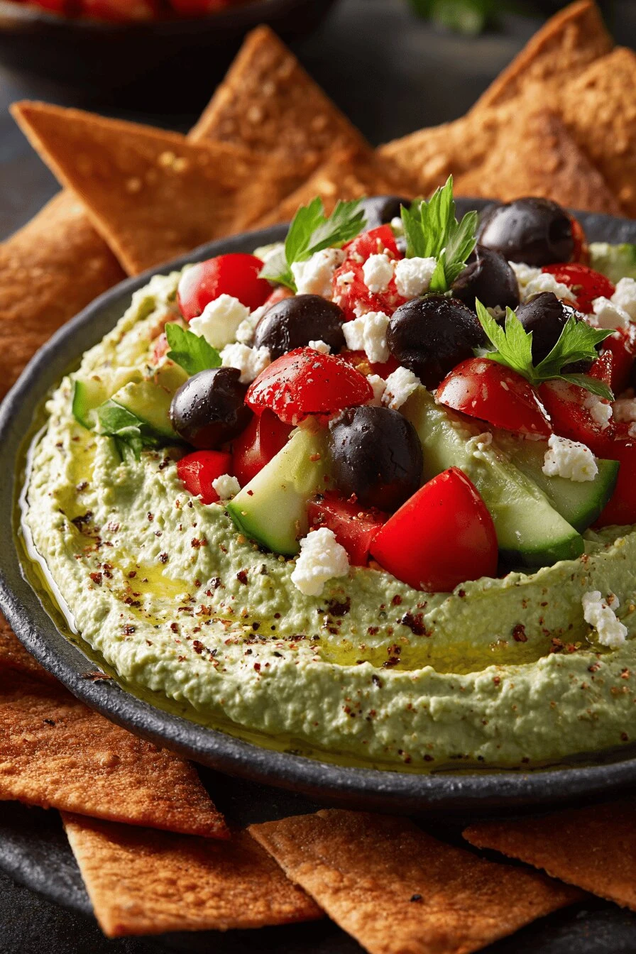 Mediterranean Avocado Dip with Crispy Pita Chips