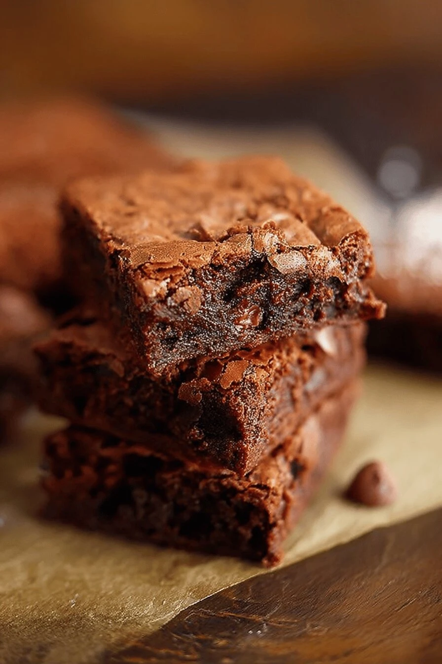 Takes less than an hour start to finish. No stand mixer. No fussing. Dark chocolate chips mixed through — little pockets of something better than fudgy. They just work. The espresso powder isn’t about coffee taste. It’s about making chocolate taste like chocolate. Deeper. Works cold too, tastes almost better the next day. One bowl. Seriously. Everything happens in it. Edges get crispy. Center stays tacky. Both at the same time. Hard to mess up once you know the doneness signs.