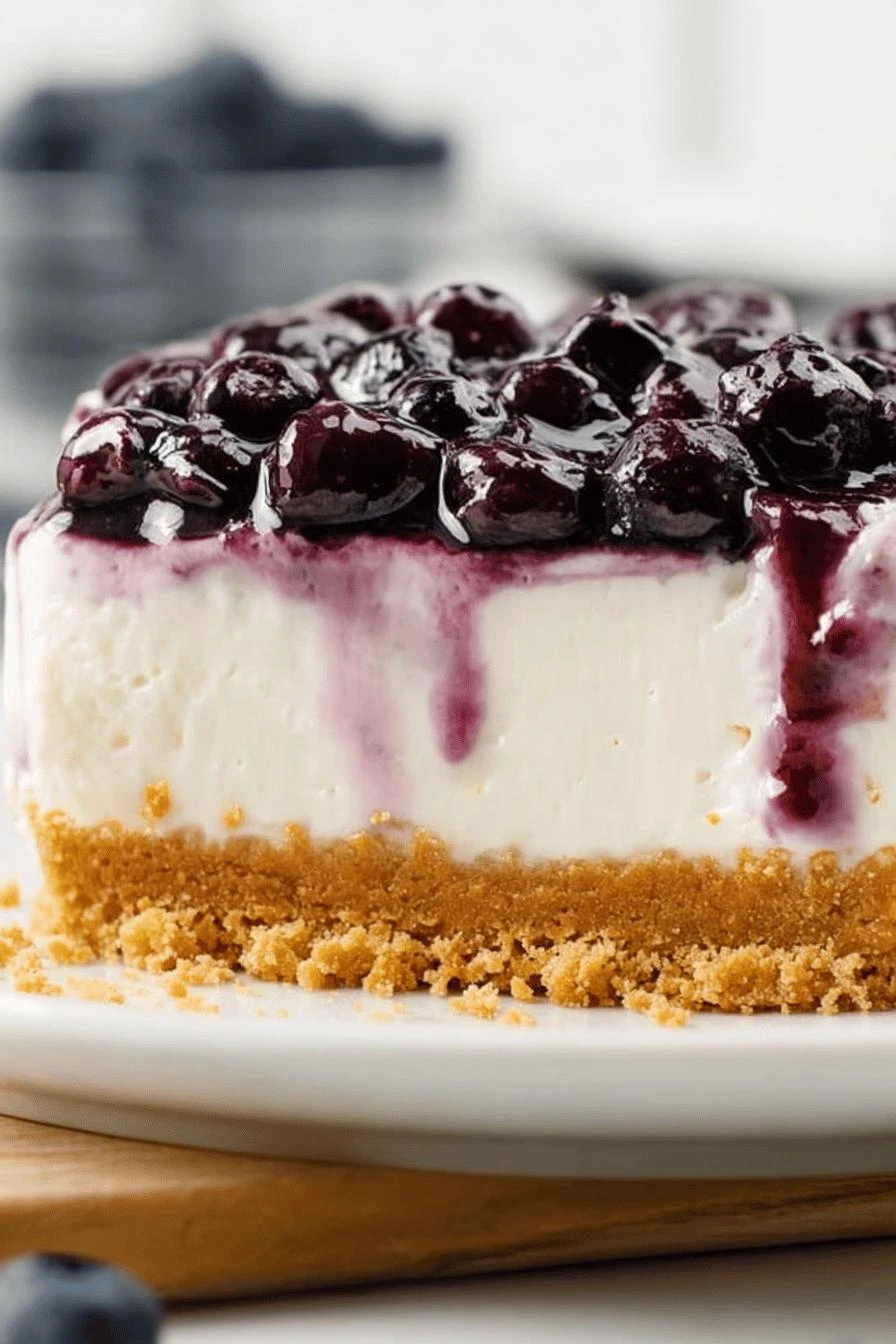 Four hours total, most of it sitting in the fridge. Zero oven time. The blueberry filling is already sweet, so the cheesecake layer stays tangy. Lime juice keeps it from being too heavy. Gingersnap and graham cracker crust tastes like actual cookies, not just a sugar delivery system. Tastes better the next day. Maybe even the day after. Cold straight from the fridge, or leave it out five minutes if you want it softer. Either works.
