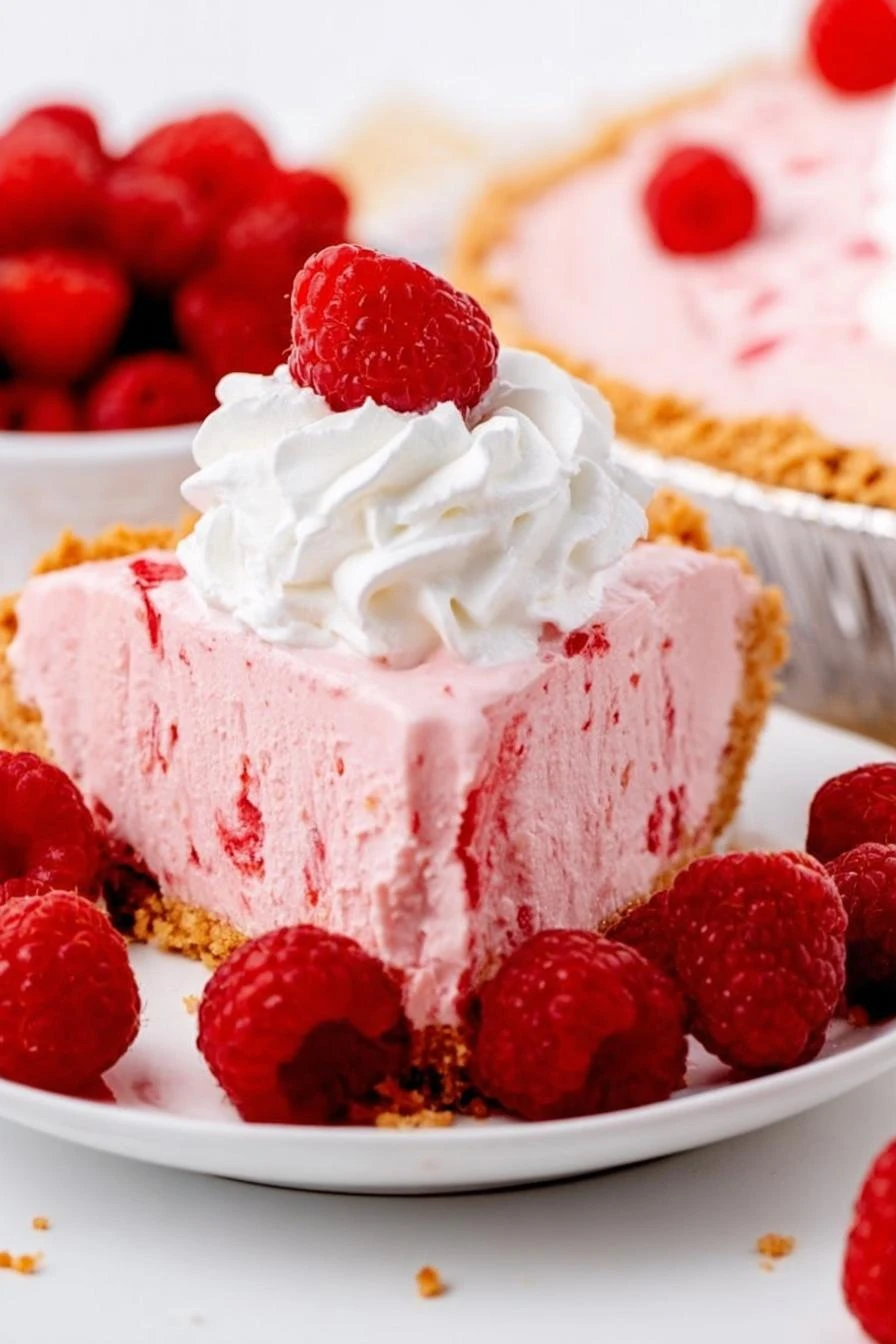 Right before serving, pipe the last of the whipped topping on top if you’re feeling fancy. Scatter more raspberries around. Chill for fifteen more minutes. Let the flavors settle.
