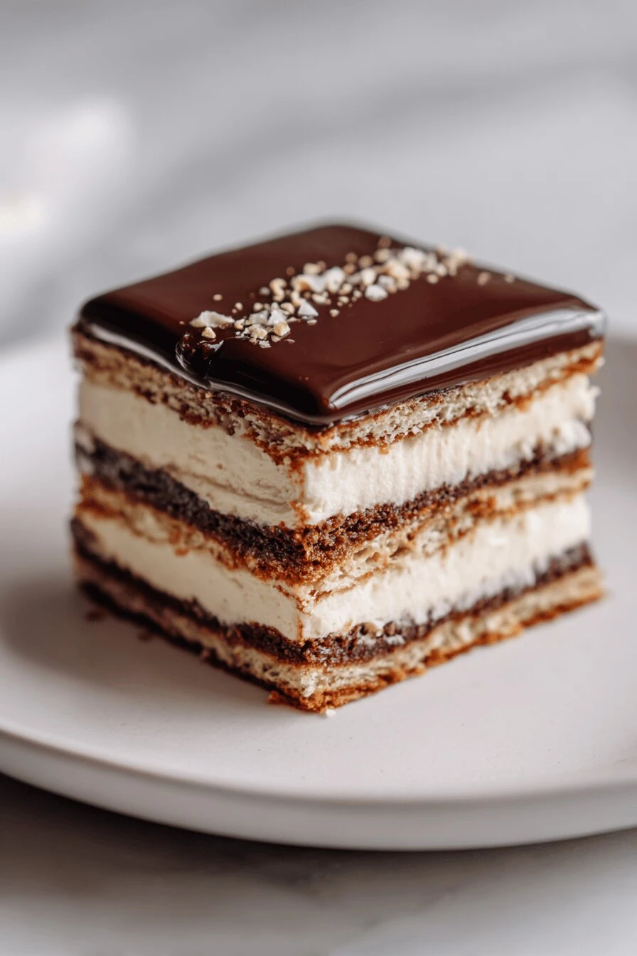 Cut the sponge. Soak it. Layer three buttercreams—chocolate, coffee, vanilla—and watch it transform into something that looks nothing like how it started. This is opera cake redux. 1 hour 15 minutes of prep, 15 minutes in the oven, then assembly that actually isn’t as fussy as it sounds once you understand the pieces.