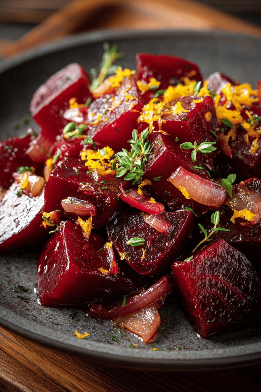 Takes 1 hour 45 minutes total, and maybe 15 of that is you actually doing something. Rest is just heat. Works with literally any protein—fish, chicken, roasted tofu, doesn’t matter. The orange keeps it light instead of heavy. Beets can feel dense sometimes. This doesn’t. Shallots and thyme make it taste like you planned it for hours. You didn’t. Thirty minutes of prep. Roasted beets are fine cold or warm. Better cold, actually—flavors sharpen overnight.