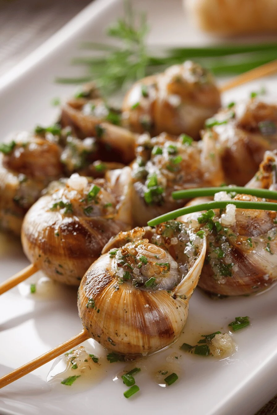 Don’t soak the skewers and then forget about them. You’ll burn the house down trying to remember. The reduction is the key thing. Boil it hard, let it go nearly dry. Skipping this step makes the whole thing bland. The flavors need to concentrate. If the Pernod smell bothers you, open a window. It cooks off but the anise stays. Serve them warm. Not hot, not room temperature. Warm. That’s when they taste right. The grill grates should be clean. Snails stick to a dirty grate. You’ll lose half of them.