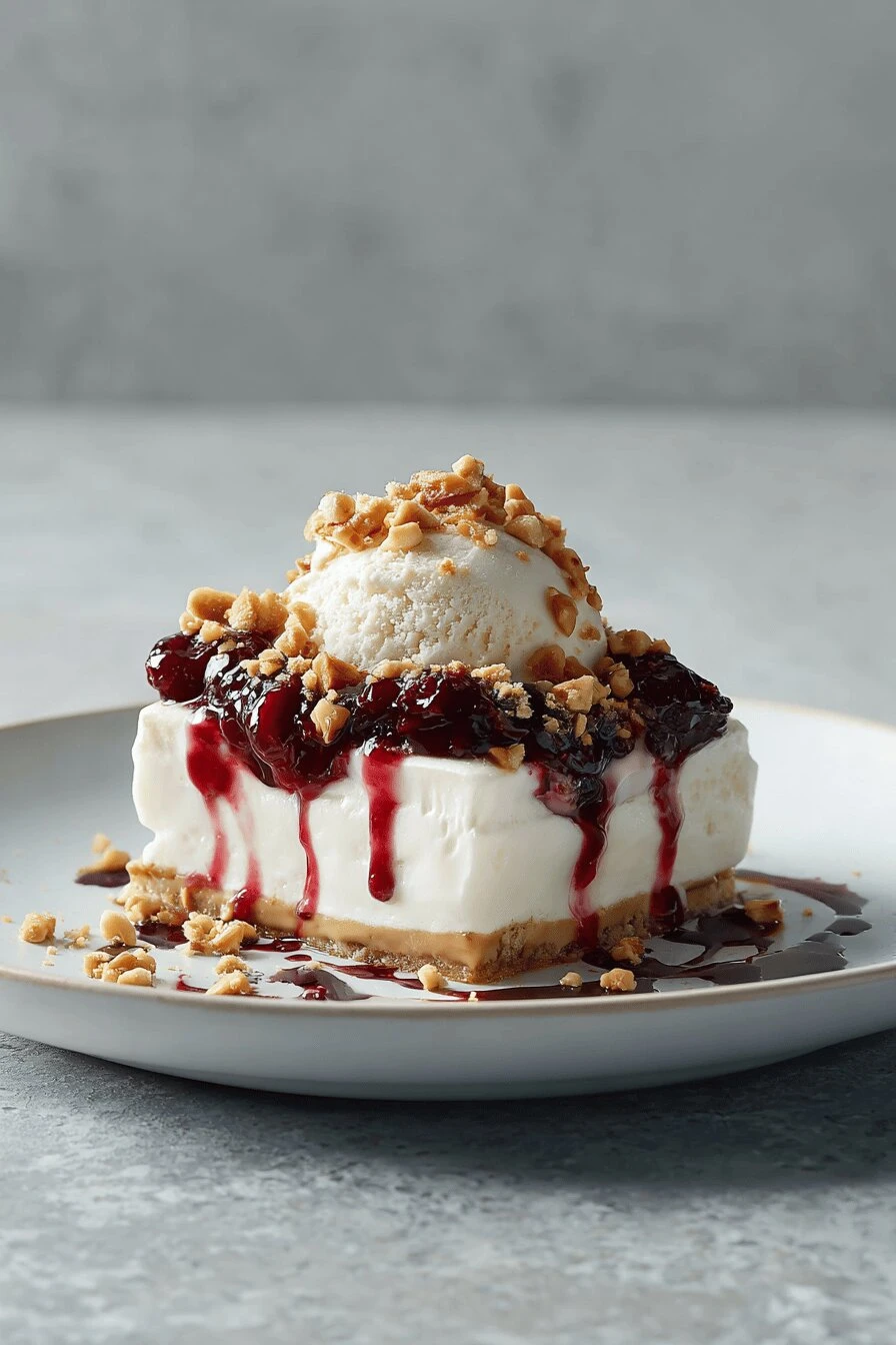 - 6 Serve immediately before ice cream melts into layers or keep briefly chilled (max 10 minutes). The contrast between creamy cold base, sweet tangy jam, and nutty crunch is key for mouthfeel.