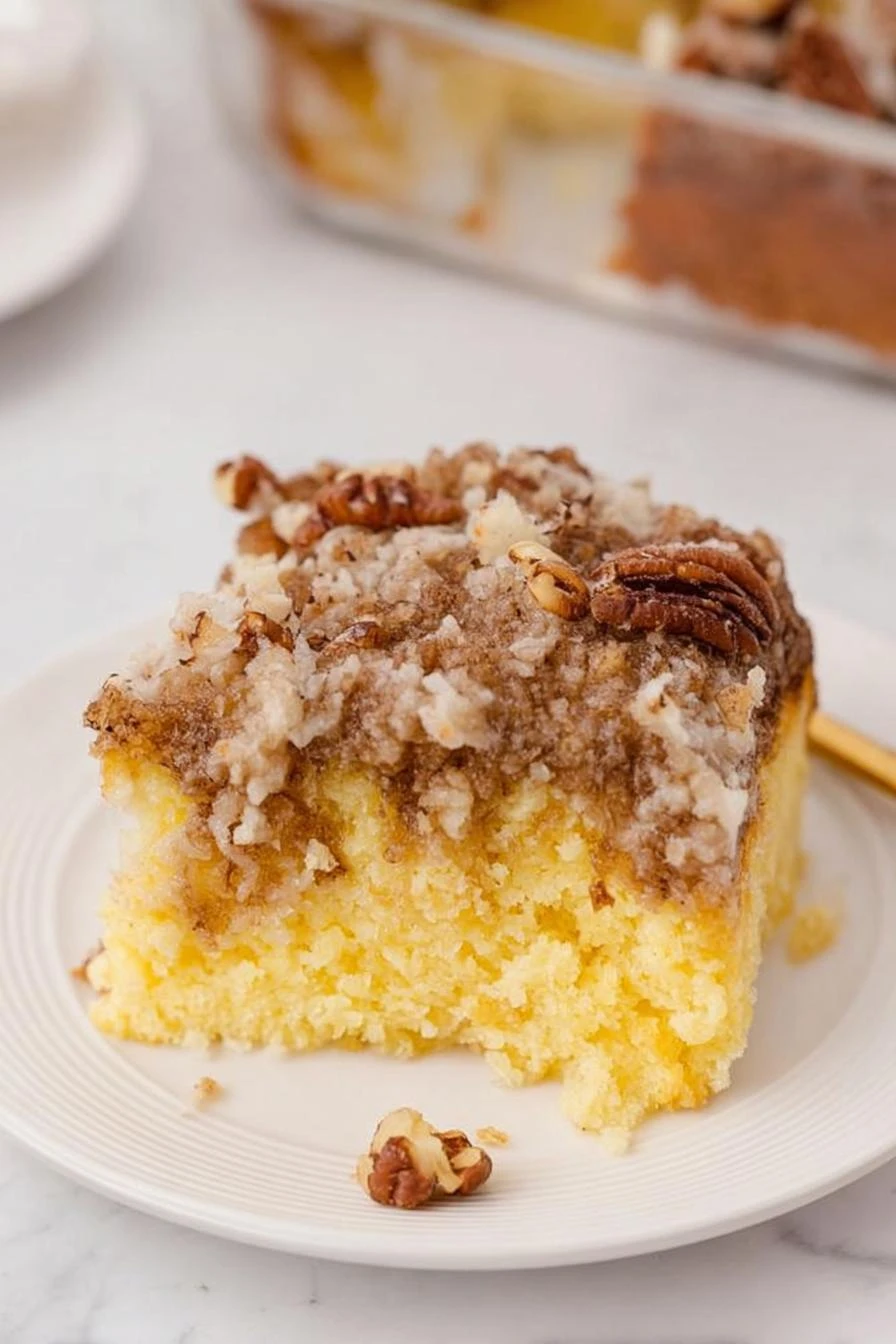 Forty-two minutes and you’re done. Not the fancy kind of baking where you’re nervous the whole time. Tastes like you spent an actual day on it. Nobody needs to know it started with a box. The topping gets this nutty, caramel thing going on—coconut and pecans doing most of the work. Pecans aren’t required but they’re why people ask for the recipe. Cold is fine. Warm is better. Room temperature is fine too, honestly. Feeds a crowd or sits in your fridge for days. Works both ways.