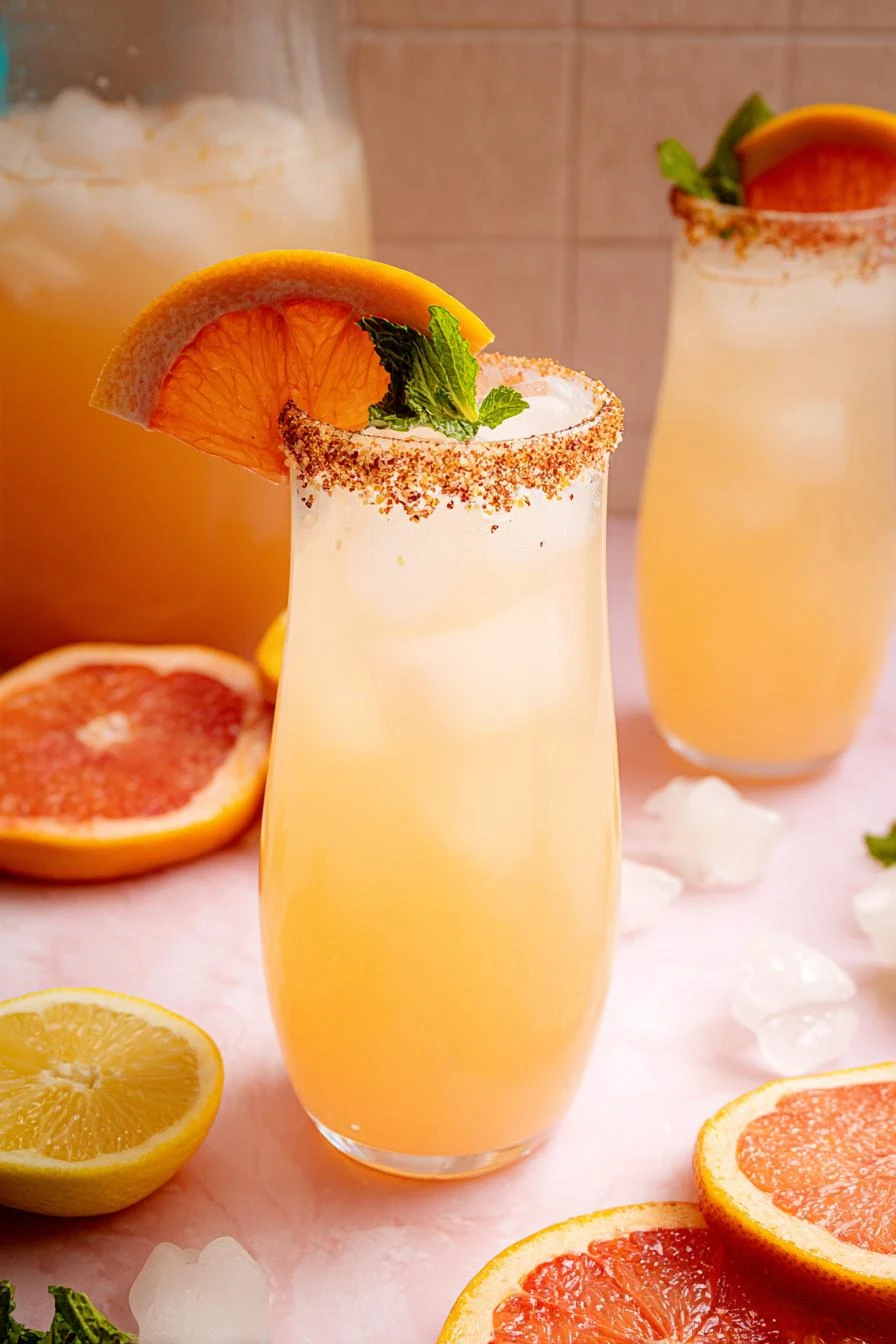 Thirty-two ounces of fresh grapefruit juice. Not bottled. Not from concentrate. Pulp settles fast, so strain it unless you like the grit. Three ounces of yuzu juice—that’s the whole thing, this isn’t a lime swap, yuzu is different. Ten ounces of tequila blanco. Something decent. Mixto tequila tastes like regret. Six ounces of simple syrup, reduced slightly because fresh citrus is already sweet enough. Kosher salt. The chunky kind, not table salt—it sticks better to the rim. Grapefruit soda to top. The real stuff, not diet, not flavored lemonade. Ice, solid cubes, not crushed. And grapefruit wedges plus fresh mint for the finish.