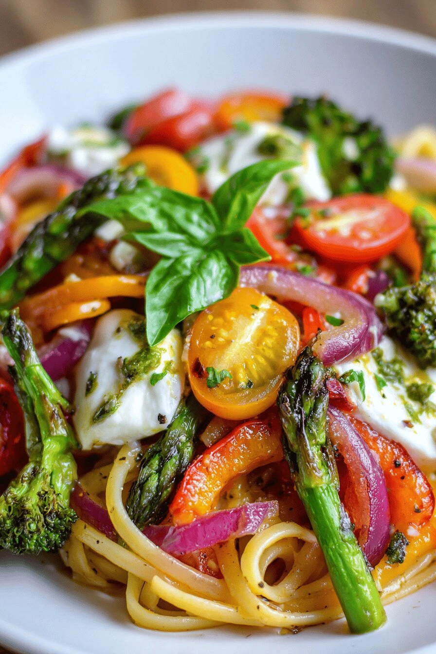 How do I keep fresh asparagus and broccoli tender in this pasta? Blanch them first. Two minutes boiling, straight into ice water. It stops them from cooking further and keeps them bright. If you add raw vegetables they’ll turn mushy and gray.