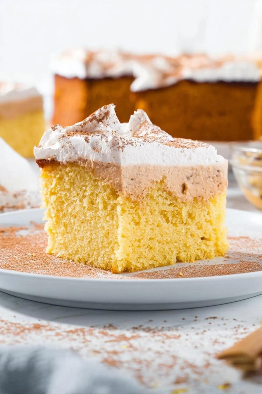Yellow cake mix—not from scratch, the box version. Half a cup vegetable oil. A cup of milk instead of water, which matters more than you’d think. Three eggs split between two parts: one for cake, two for the pumpkin mixture. A can of pumpkin puree, the one that’s just pumpkin. A can of evaporated milk or half and half if you want it richer. Two teaspoons of pumpkin pie spice. Light brown sugar, half a cup. Instant vanilla pudding mix, the kind that needs cold milk. Two more cups of cold milk for that pudding. Cool Whip straight from the freezer. Nonstick spray for the pan—nine by thirteen, the standard one.