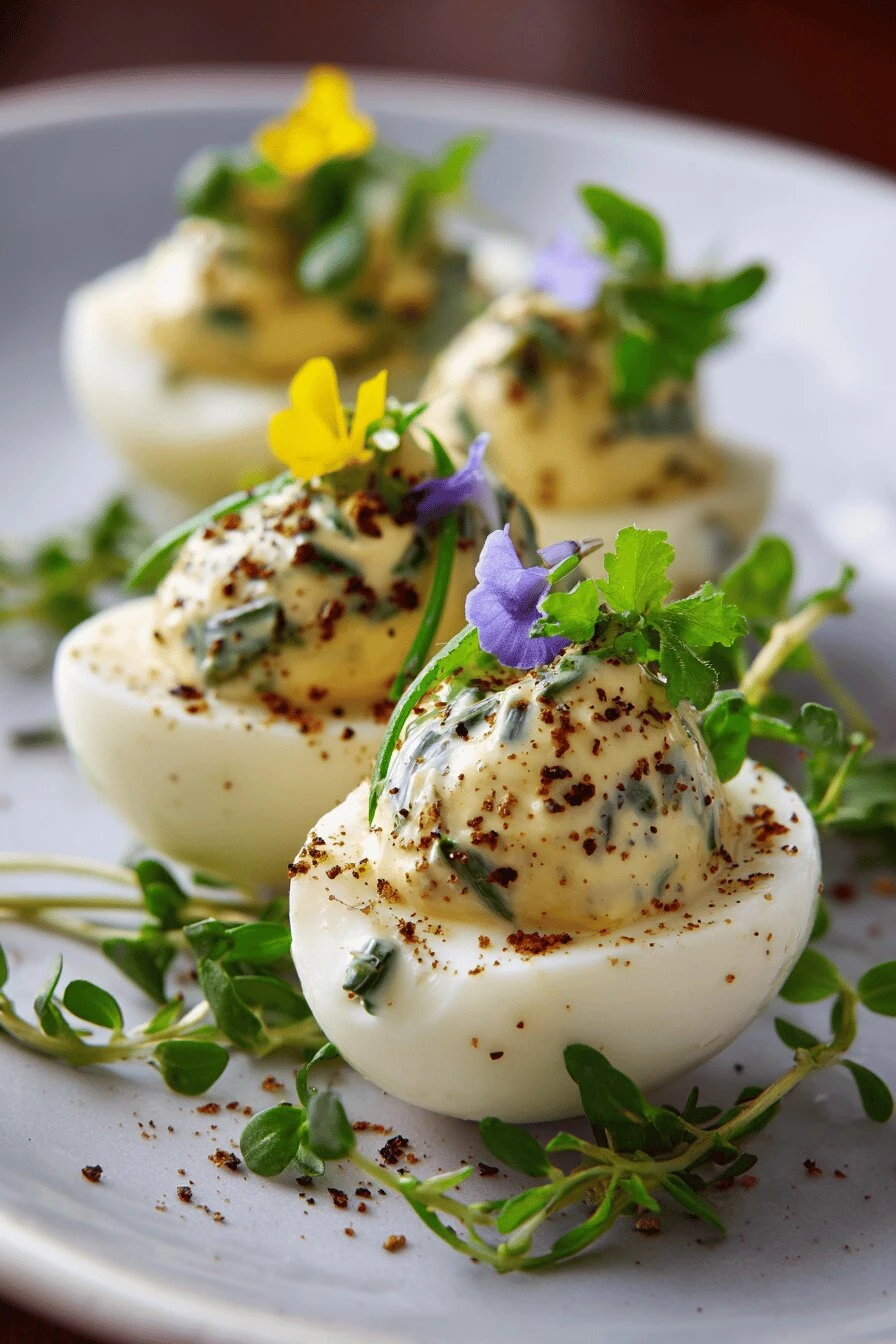 Takes 22 minutes total. Most of that is waiting around. Costs almost nothing. Twenty eggs, maybe two dollars. Looks like you went to culinary school. Tastes like you did too. Make them Sunday, eat them all week cold straight from the fridge — they get better, actually. Not sure why. The tarragon mayo is stupid easy. Basically just whisking.