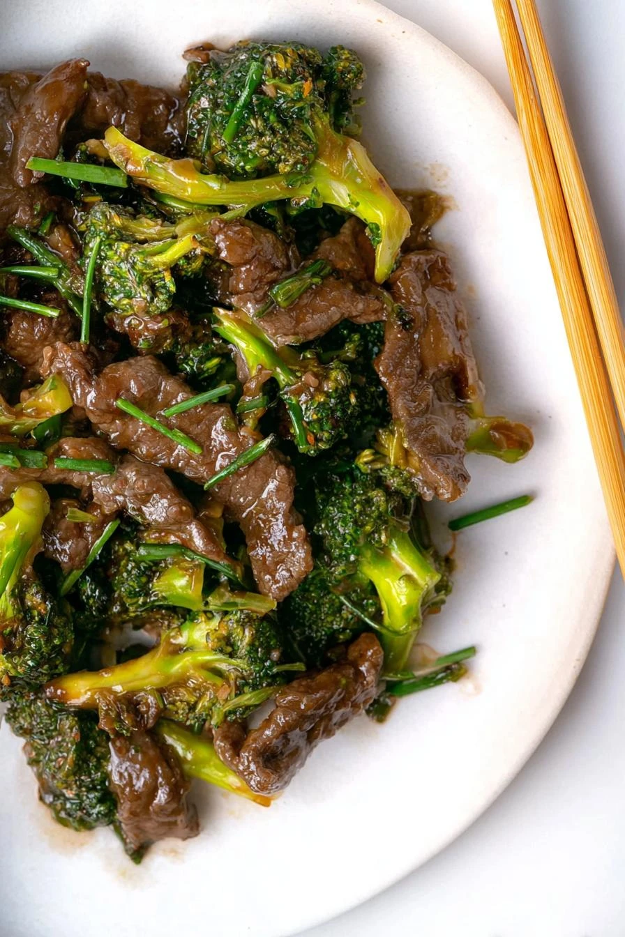 The sauce should cling to the beef and broccoli. It gets glossy. That’s the moment you want. Green scallion parts go in last—just the greens. Toss briefly. Two seconds. That’s it. The heat wilts them. Fresh punch to the whole thing.