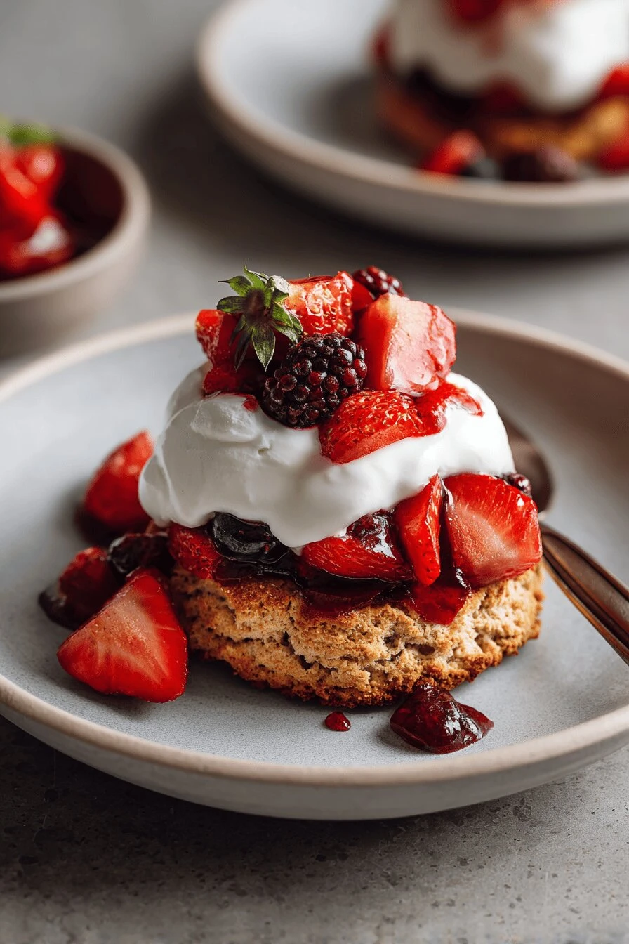 Takes 35 minutes total. Breakfast, dessert, doesn’t matter. Spelt flour gives it a chewier thing going on — softer crumb than regular wheat but still crisp on top where it counts. One bowl basically, minimal cleanup. Tastes better the next day cold, which almost never happens with shortcakes. Works with whatever berries you have. The brown sugar deepens everything without tasting sweet exactly.