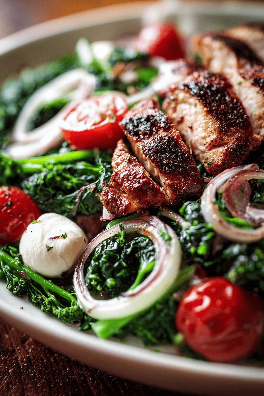 What if I don’t have fresh mozzarella? Skip it entirely. Salad stands on its own. Feta works if you want something salty and sharp. Goat cheese works too if you have it. But honestly, the blanched rapini with grilled tomatoes does enough.