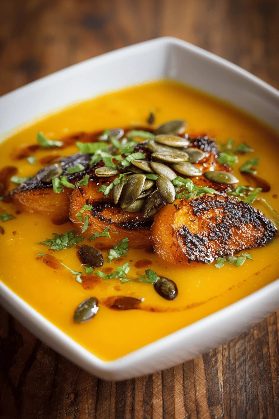 Roasted Spiced Squash Soup with Pumpkin Seeds