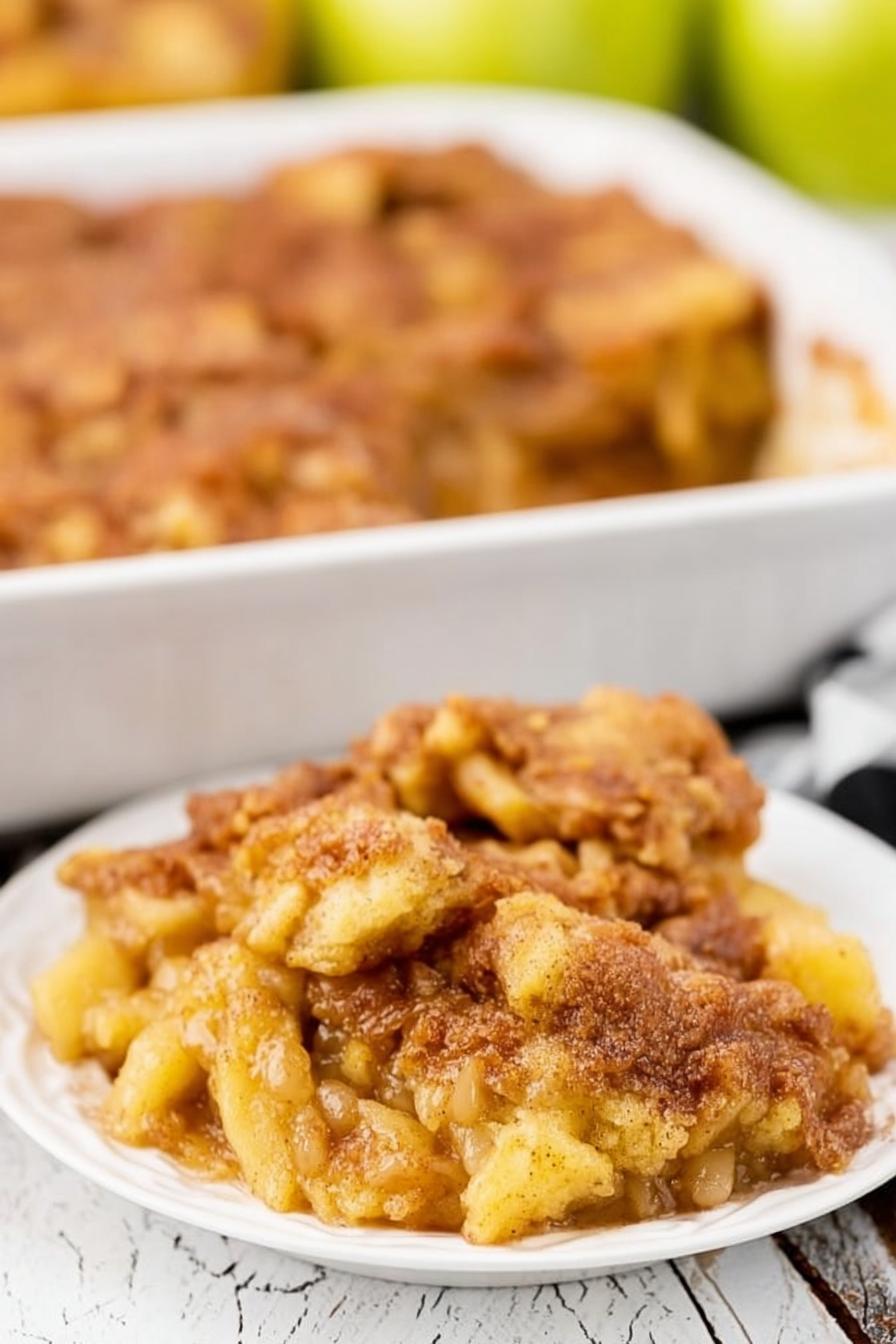 Grab apples, cinnamon, sugar. Cube, toss quickly in lemon water so no brown slime creeps in. Tried warm water once — disaster. Keep ’em cold, crisp. Sugar slicks apple pieces, cinnamon sparkles over top. Cake mix dusted like snow. Butter drops scattered like little treasure. Melted butter drizzled melting those crumbs before oven. Sounds simple, but timing and textures matter. Bubbles tell you what’s happening inside, golden brown top is invitation. Smell tells secrets. Crisp to soft. The way edges caramelize? Magic. Tried making it with flour and my own sugar pudding base — nope, box mix nails crumb top. Doesn’t need fuss. Touch and sight, not just clock. Sit tight five after bake, if hands burn it’s too hot still. A far cry from fancy.In a pinch, granny smith or gala work; cooking apples give different sweetness balance. I’ve swapped apple pie spice for a sprinkle smoked paprika once — unexpected but fun twist with warm roast pork dinner. Keep basics, build from kitchen mood and what’s fresh. Sweet, simple, rustic cake you want to dive into while still warm, runny edges, crunch top, haze cinnamon in air.