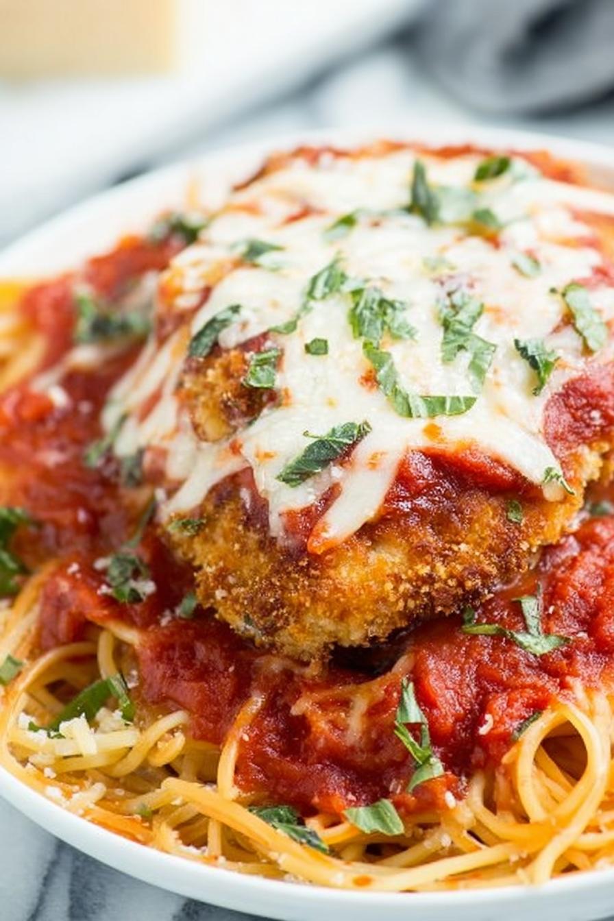 Chicken breasts pounded thin, dredged in seasoned bread crumbs with Parmesan and parsley. Browned in olive oil till golden, then baked under marinara and mozzarella. Uses panko instead of plain crumbs for crunch, a touch less salt. Oven at 355 degrees for even cooking. Mozzarella melts creamy, sauce bubbles around edges, aroma fills kitchen. Watch for internal temp 165 degrees or juices run clear. Serves four with spaghetti or any pasta. Protein rich, moderate fat, low carb, bold flavors, classic Italian-American comfort. Adjust breading thickness or cheese types for twist. Easy to double or halve portions. A weeknight staple, forgiving and straightforward. Comes together in under an hour with prep, cook time combined. Ideal for hands-on cooks who love crisp textures with melty cheese finish. Each bite crunchy, creamy, tangy, balanced. This version trims excess salt, adds fresh basil finish.