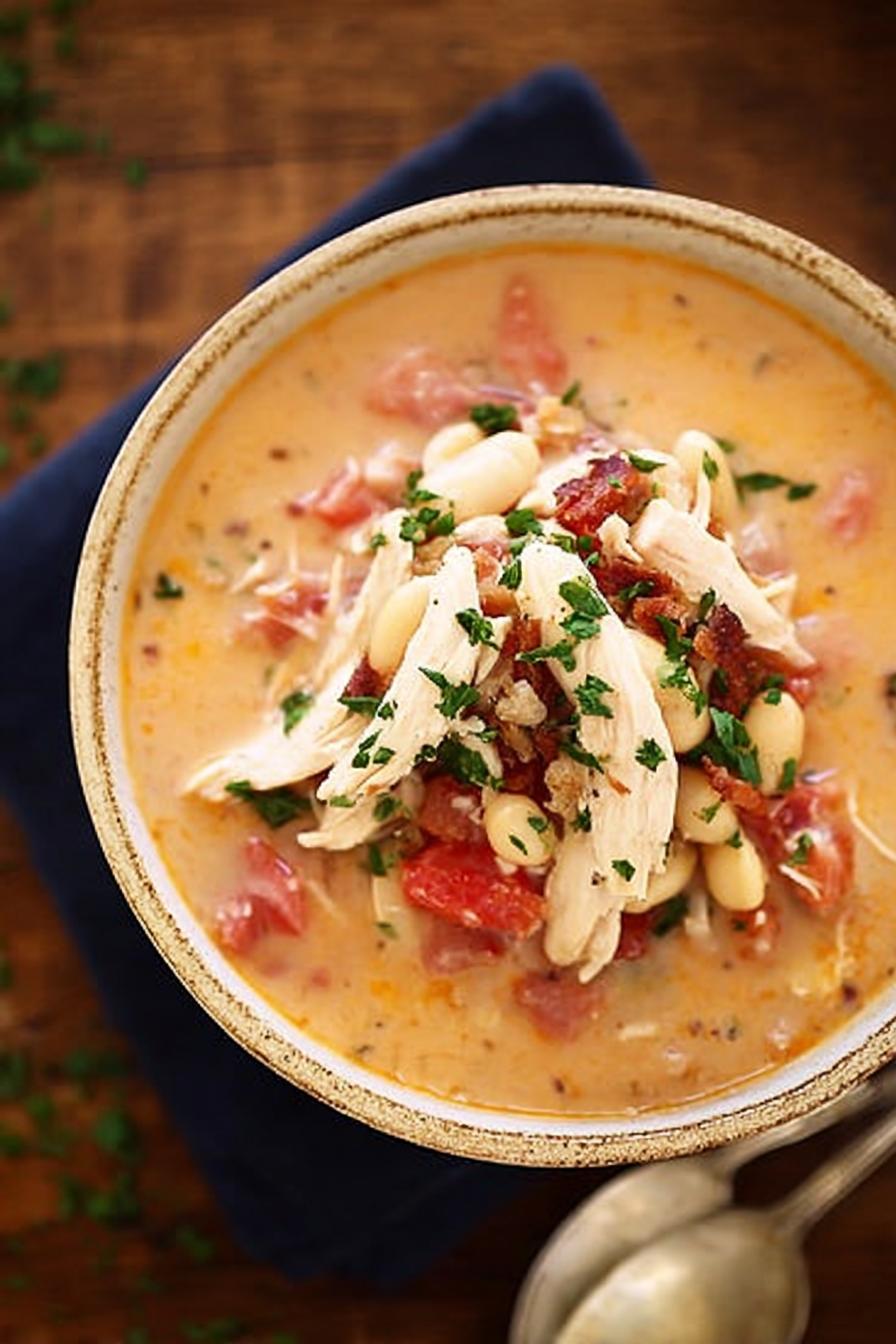 Chunky chicken stew, slow-cooked to tender, bubbling with layers of sharp cheddar and smoky bacon swapped in for cheese. Reorganized steps to coax deep melded flavors. Cook times nudged minutely, prioritizing sight and scent cues over clocks. Salt pepper to the end. Comfort in a crock.