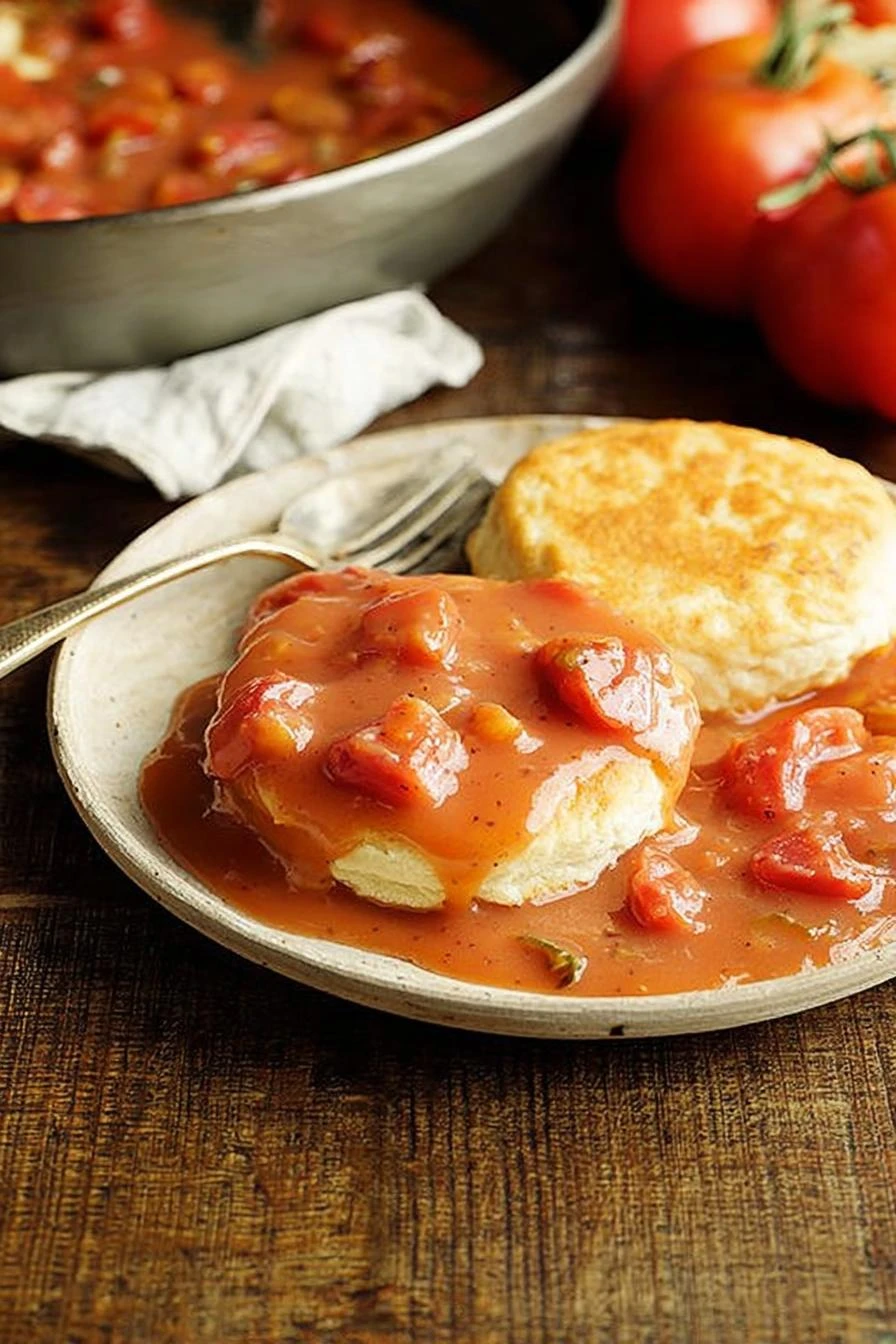 Takes 22 minutes flat. Bacon gravy without making bacon, basically. Works cold over everything — biscuits, grits, fried chicken, leftover potatoes. Leftovers might taste better. Comfort food that doesn’t feel like you’re trying. Just cooks. Tastes like a Southern kitchen without the setup. Fire roasted tomato gravy, but simple. One skillet. Cleanup’s nothing.