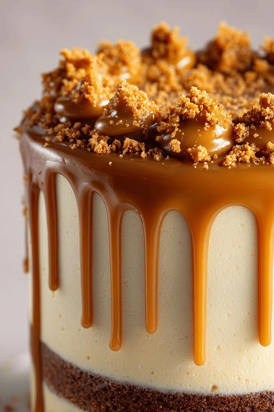 Salted caramel frosting for chocolate cake that streaks through instead of swirling smooth — you folded it in, left it uneven on purpose. Toasted cake crumbs mixed right into the frosting. On every layer. That’s the texture people notice and don’t understand.