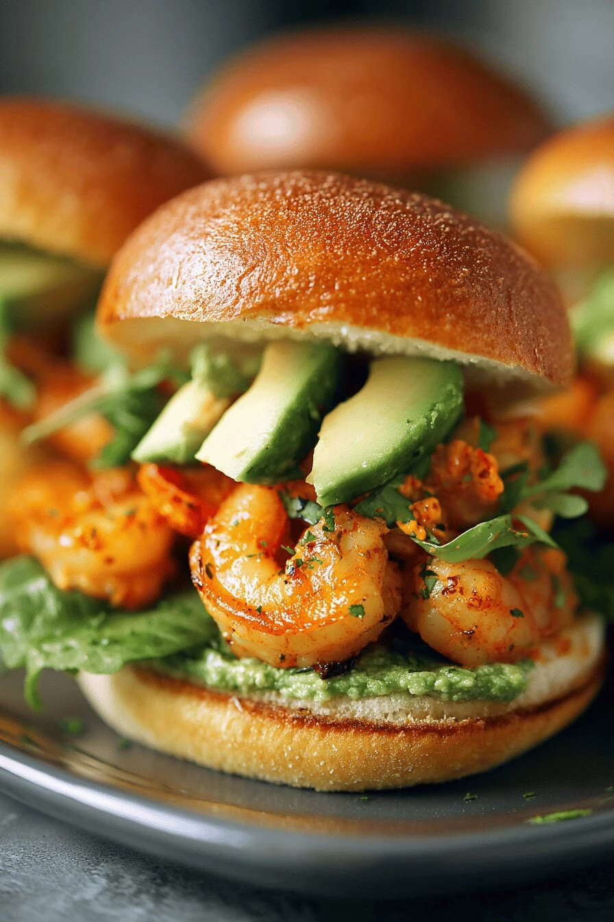 - 7 Spoon generous amount of shrimp-avocado mixture over the lettuce, mound slightly, then top with the bun.