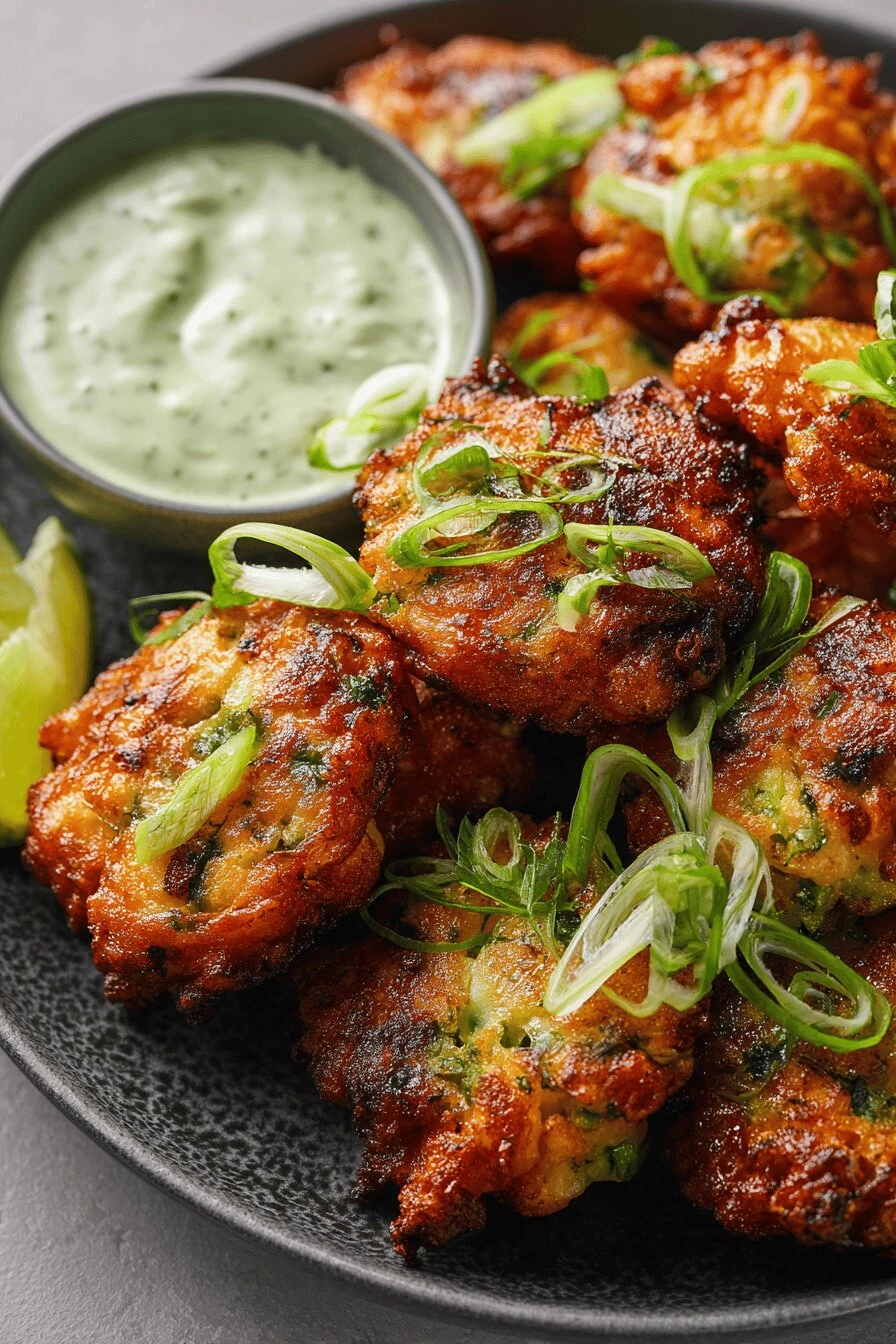 Crispy outside, shrimp inside. Takes 46 minutes total — 35 to prep, 11 in the oil. Works as an appetizer or a side. Seafood without the fuss. The lime mayo cuts through the fried richness. Not heavy. Actually bright. Green onions get soaked in ice water first. They stay crunchy. That crunch matters. Cayenne and garlic are already in the batter. No extra seasoning needed. Just dip and eat.