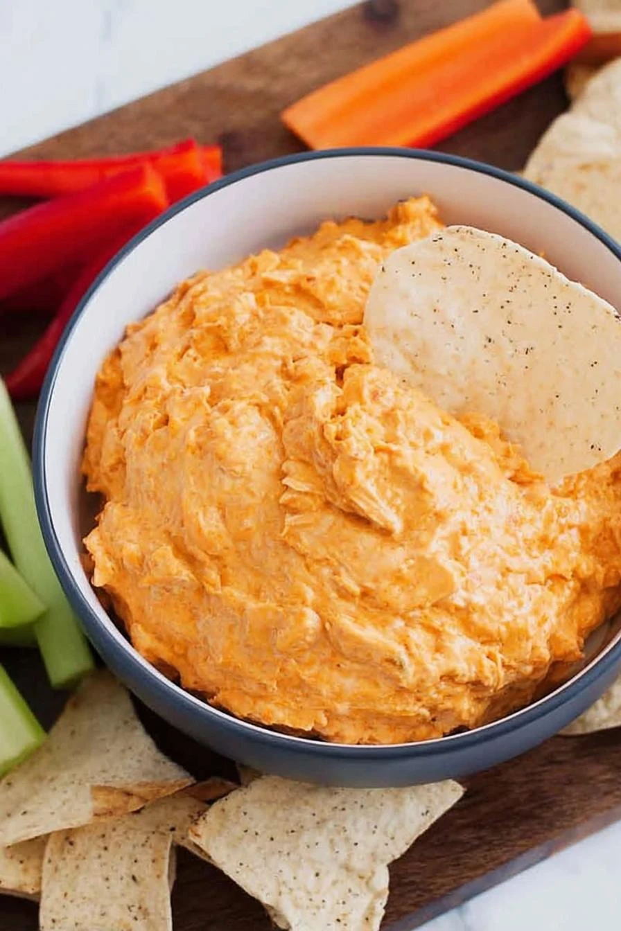 Celery sticks on the side. Tortilla chips work. Even toasted baguette slices are solid. The dip carries whatever you dip into it.