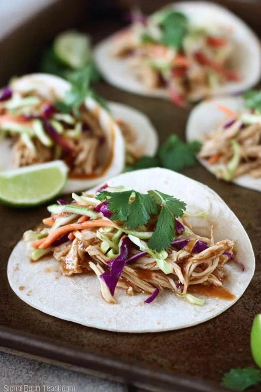 Dump chicken in the slow cooker and walk away for 4 hours. That’s dinner. Three pounds of broccoli slaw mixed with ginger and garlic crunch, soft meat that falls apart, warm tortillas, a lime wedge. Takes 20 minutes of actual work spread across the whole thing. Had a ton of chicken breasts one Sunday. Didn’t feel like standing over the stove. This happened, and now I make it constantly.