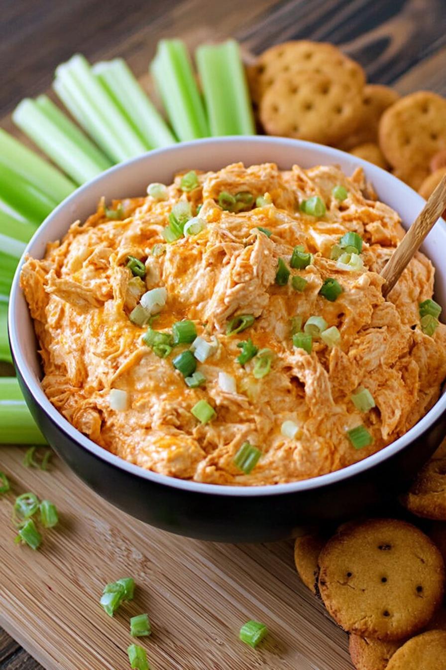 - After 30 to 35 minutes, when dip is thick and chewy, ready to scoop. Best served warm. Chips, celery sticks, or crackers are key. Leftovers cold are hesitant but reheated? Even better.