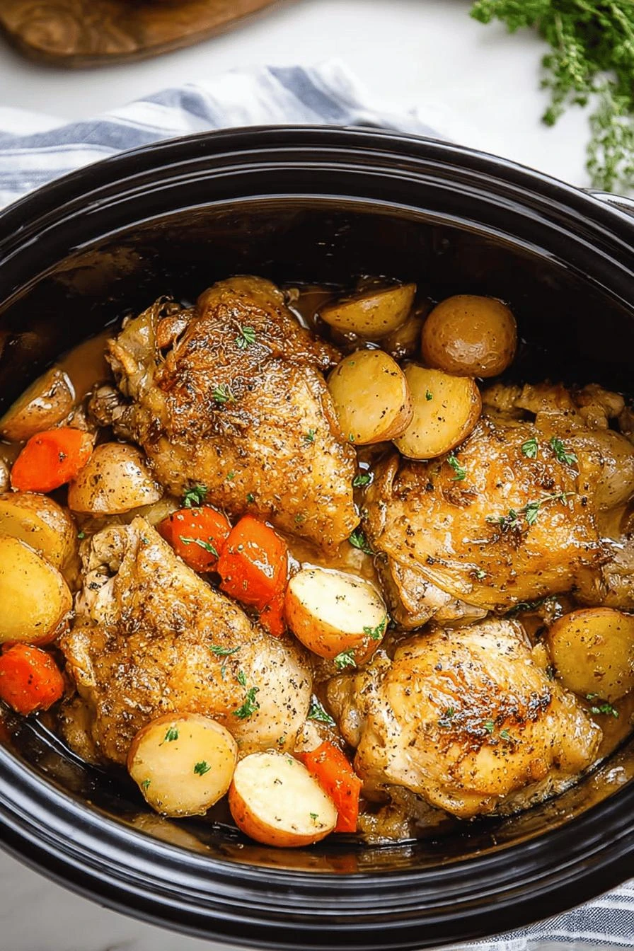 How to Make Slow Cooker Chicken Thighs with Potatoes and Carrots