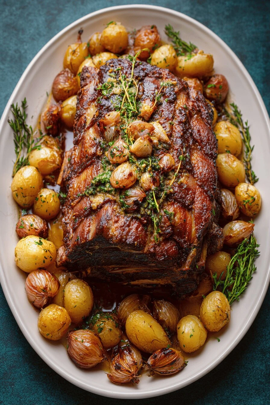 - 7 Slice thin against grain. Serve with roasted shallots and pan jus. Potato mash or simple greens to cut richness.