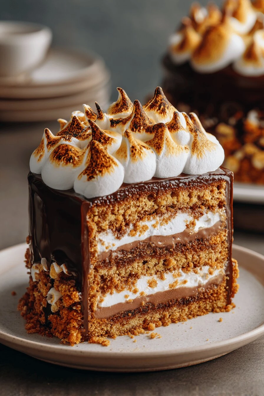 If your stacked layers start wobbling, chill the assembled cake for 15 minutes before adding the marshmallow topping. Keeps everything stable. Marshmallow stays pliable longer when the cake’s cold.