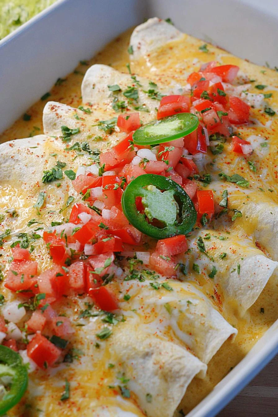 What’s the difference between these and regular enchiladas? These are rolled burritos not stacked enchiladas. More filling per tortilla. The cheese sauce instead of just red sauce makes them richer. Completely different texture.