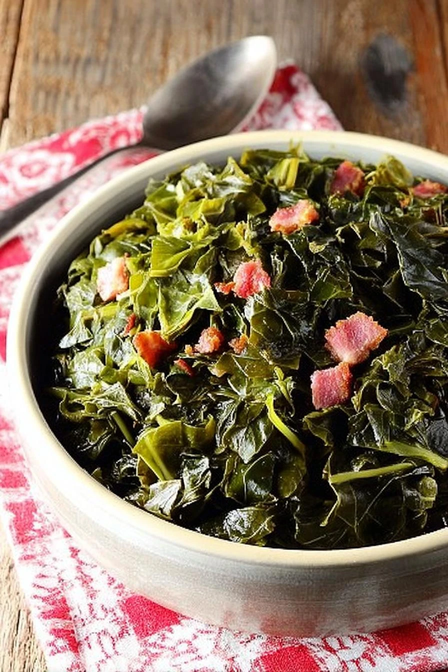 Takes 15 minutes to prep, then the slow cooker does the work. Two hours tops. Deep smoky comfort. Ham hock energy but less grease sitting on top of everything. Leftovers taste better the next day. Actually better. The greens keep softening, the broth gets darker. Works as a side for literally anything — pork, chicken, beans, just bread. No judgment. One pot. Minimal cleanup. The smell alone fills your whole place.