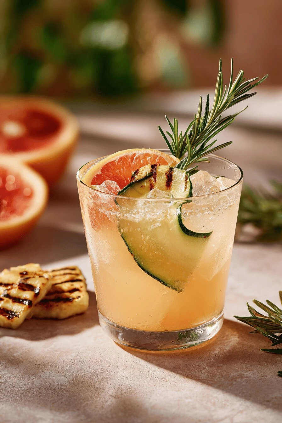 Takes 15 minutes total — 8 minutes prep, 7 cooking. Not a craft cocktail that needs special tools. The grapefruit slice goes in the pan first. Gets smoky. Changes everything about how the drink tastes. Zucchini shaved thin. Rosemary. These aren’t decoration — they actually work in your mouth. Bitter-sweet-herbal all at once. Works cold or warm depending on how fast you drink it. Stays interesting either way. Cleanup’s maybe five minutes. One skillet. One glass. Done.