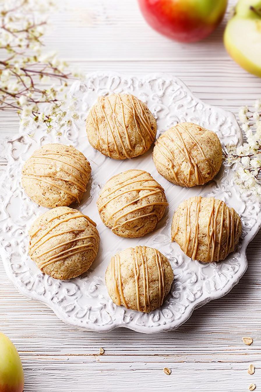 Soft butter creamed well. Applesauce moisture controls dryness. Don’t overbake. Flatten dough balls before baking. Too much oven time dries edges, centers harden.
