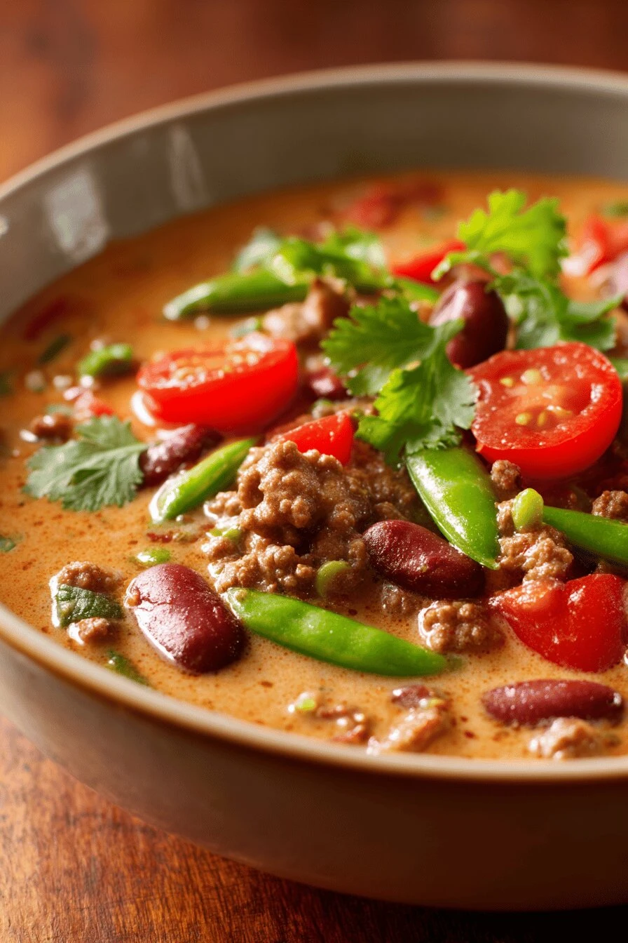 This isn’t a basic hamburger. It’s ground beef cooked like a proper curry chili with black beans, coconut, and spices that actually work together. Takes 60 minutes total but most of it’s just sitting there getting better.