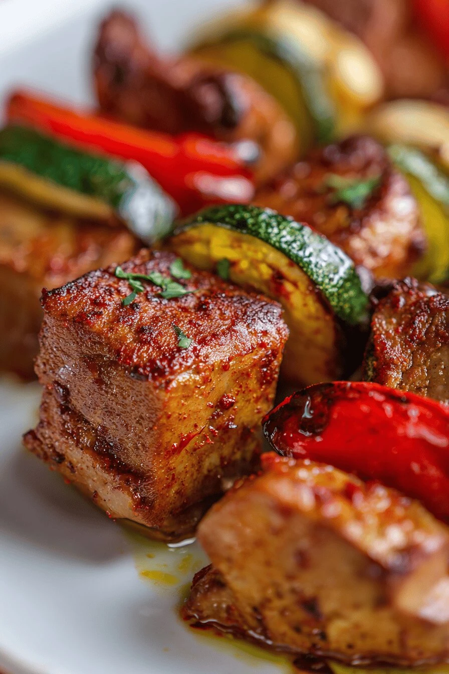 Olive oil — three tablespoons. Not less. It carries the spice. Lemon juice. Just two teaspoons. Not lime. Lime changes it. Smoked paprika. Three-quarters of a teaspoon. The actual smoky kind, not the regular stuff. Ground cumin — half a teaspoon. Barely tastes like cumin at first. That’s the point. Saffron threads. A pinch. Like, a few strands. Expensive and worth it here. Crushed red pepper flakes. A pinch. Heat. Not pain. Pork tenderloin. One and a quarter pounds, cubed. You could do pork loin or pork belly. Tenderloin works fastest. Wooden skewers. Four of them. Soak them first — 30 minutes minimum or they burn. Salt and black pepper. Not the pre-ground stuff if you can help it. Matters more than you’d think.