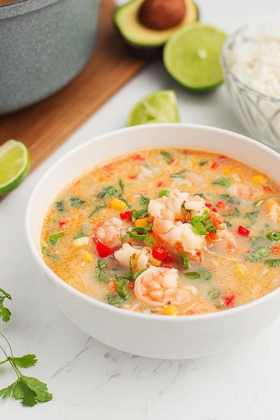 28 minutes total. Seafood stays tender because you’re not drowning it in heat. The coconut milk smooths out the spice instead of letting it bite your face off. Cold night, you’ve got a soup that tastes like Thailand without the flight. Lime juice at the end cuts through everything — makes it taste bright even though it’s creamy. Maldon salt flakes on top give you that crunch. Most soup doesn’t have that. This one does.