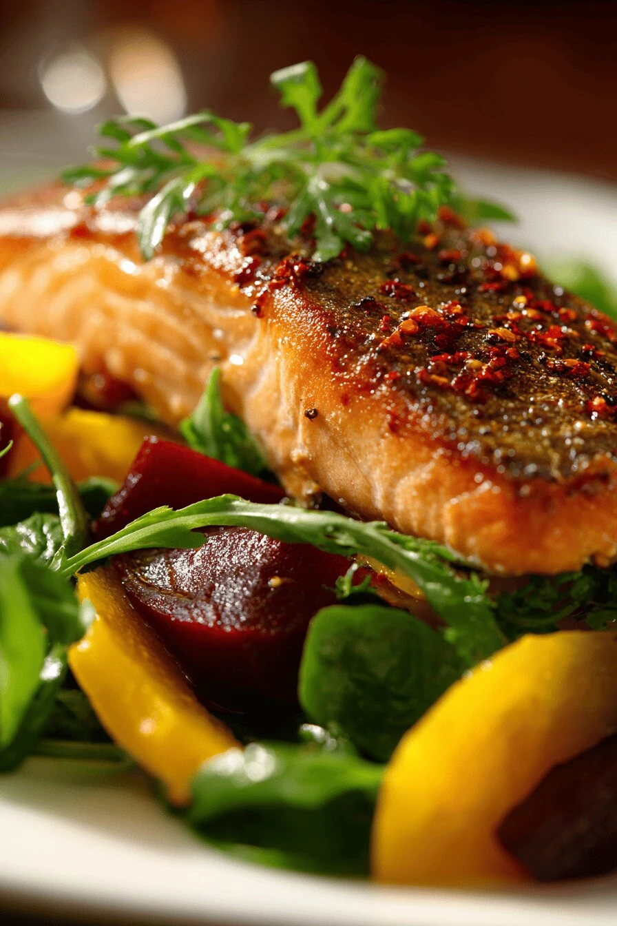 Trout hits the pan skin-side up. Don’t move it. Four minutes gets you that golden sear, and the flesh stays tender underneath. Meanwhile, the beets and spinach are waiting—bright, earthy, ready for lime and heat.