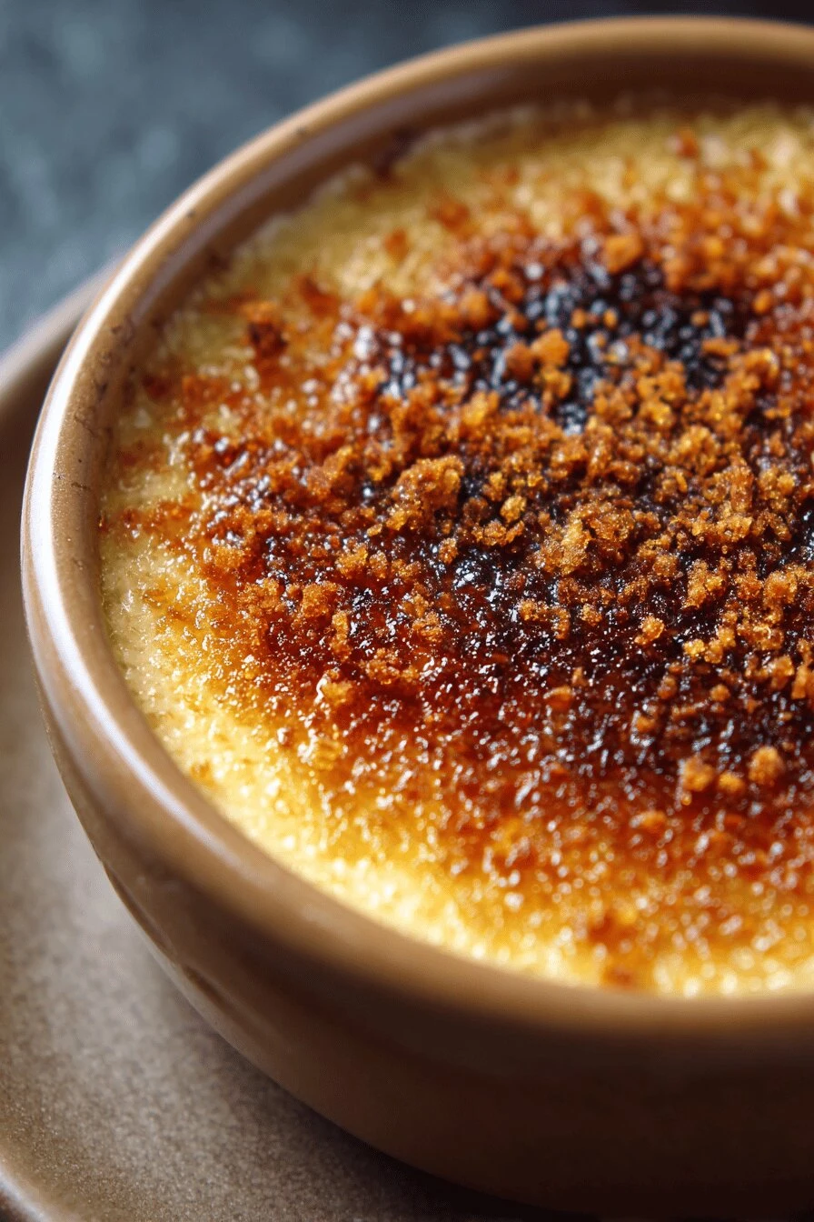 Let the brûléed custard sit one minute before serving. The sugar hardens as it cools. When you tap it with a spoon, it cracks. That’s the whole experience. If you serve it immediately the sugar’s still soft and it doesn’t have that snap.
