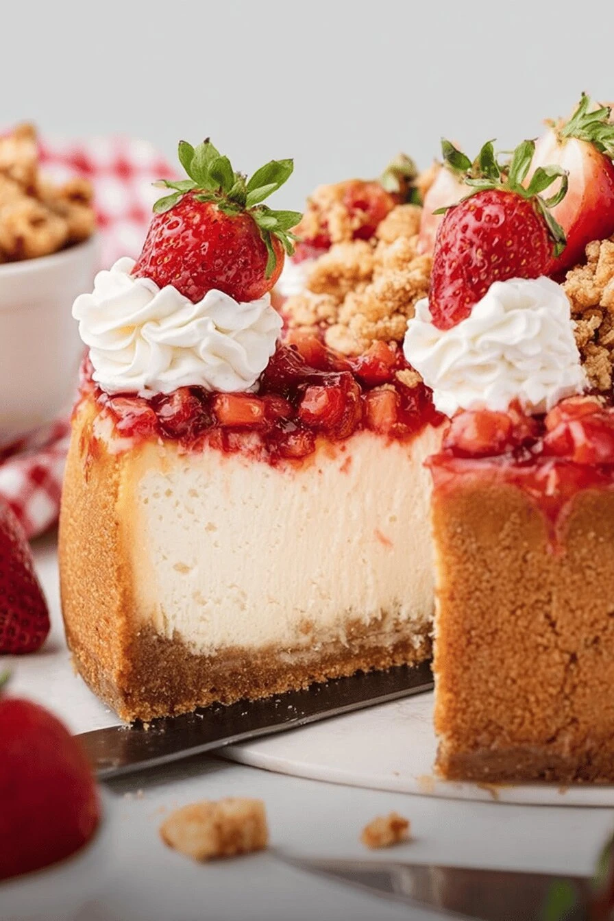 Tastes like you spent all day on it. The strawberry cheesecake angle works because the topping goes on fresh — still has that snap when you bite through it. Room temperature ingredients matter way more than anyone admits.