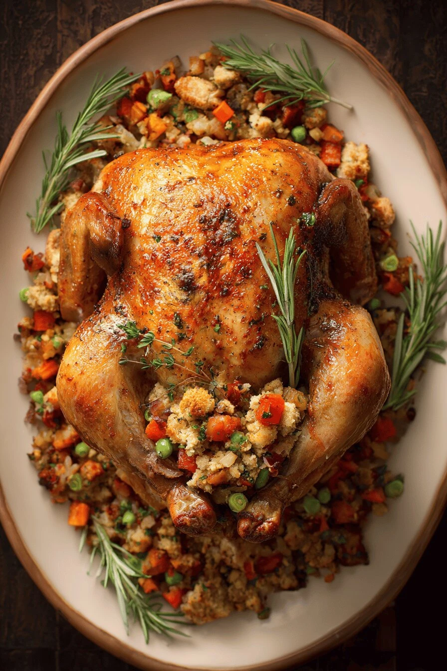Can I make this stuffed chicken breast instead of a whole chicken? You’d need to butterfly chicken breasts and fill them. Different technique. Different timing. This recipe’s built for a whole bird—the heat takes longer, the stuffing stays moist longer, skin gets crispy on all sides. Do the whole chicken.
