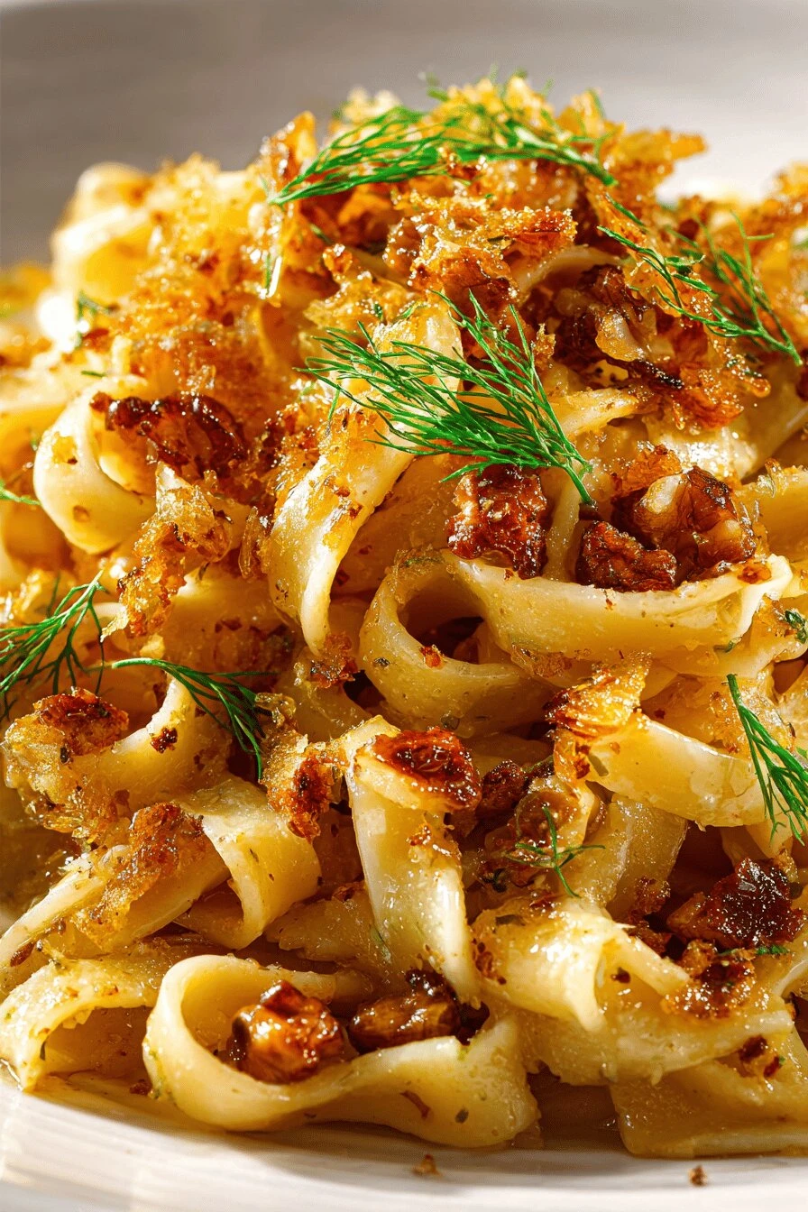 Toast the brioche first—that’s where the crunch comes from. Fennel going soft and sweet in white wine. Then you toss it all with tagliatelle and suddenly it’s not what you expected but somehow exactly right.