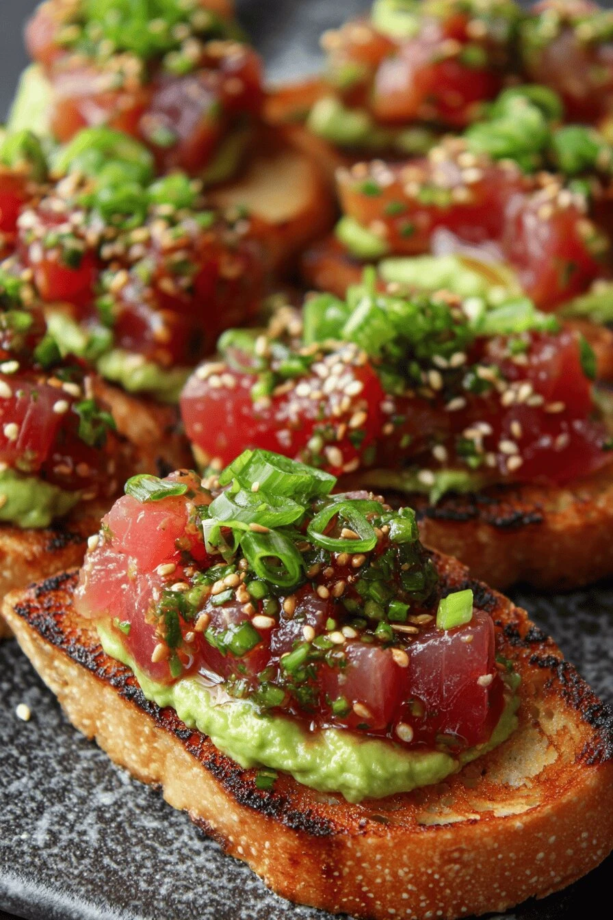 - 6 If avocado begins oxidizing before serving, cover tightly and add a tear or two of extra lime juice to refresh color. If tuna juice pools, drain slightly on paper towel before mixing - keeps tartare clean. For an alternative base, substitute baby arugula with micro cilantro or shiso leaf for different herbal notes. Baguette stale? Use rice crackers or toasted lavash instead; texture contrast critical.