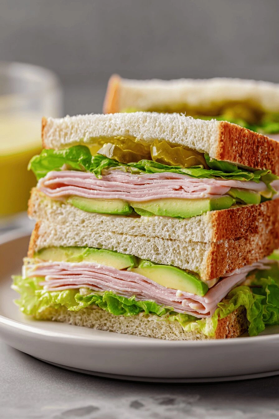 - 5 Add avocado slices gently — too ripe and they mash; too firm and they lack butteriness. Look for uniform pale green. Lay slices across ham, not stacked. Avoid brown edges.