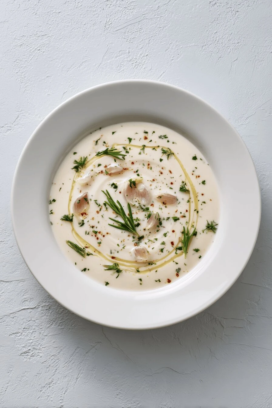 Olive oil—40 ml. Not butter. Not a mix. Olive oil stays smooth, doesn’t separate when it cools. All-purpose flour. 35 ml. Sounds like nothing but it’s the thickener. Whole milk and heavy cream. 450 ml milk plus 50 ml cream. Full fat matters here. Skim breaks. One small shallot. Minced. Not garlic. The flavor’s different—softer, less aggressive. Shallot dissolves into sweetness. White pepper. A pinch. Black pepper floats. You see it. White pepper disappears into the sauce. Salt. Taste as you go. Never add it all upfront. Optional: vegetable stock. 100 ml. Swap it for some of the milk if the sauce tastes flat.