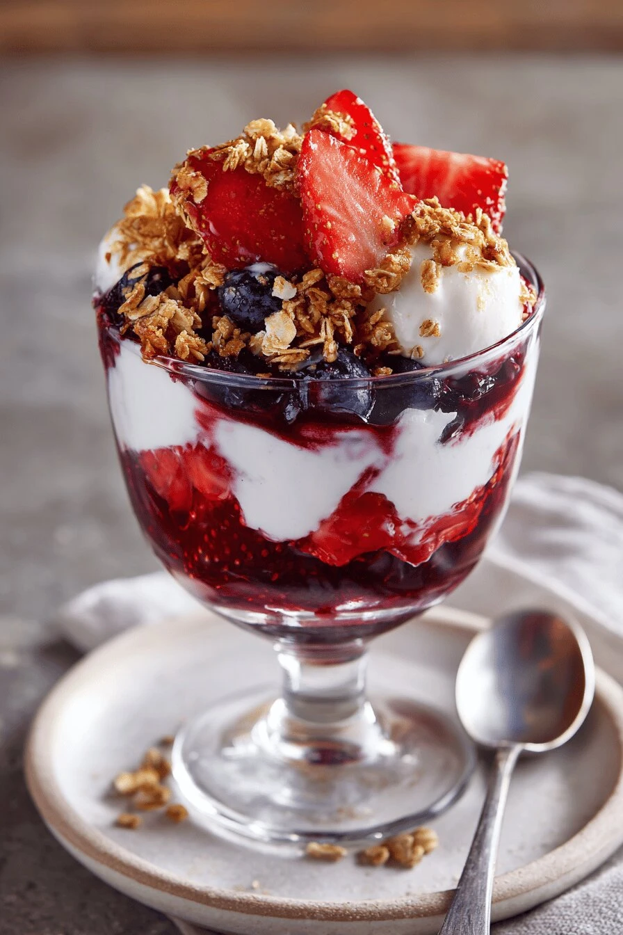 Serve immediately. Not ten minutes later. Immediately. The whole thing works because the cold yogurt stays creamy and the oats stay crunchy and the fruit juice stays syrupy and they’re all different temperatures and textures. If you let it sit, everything melds. The oats soften. The yogurt starts to melt into the juice. It’s not bad. It’s just not what you made it to be. You’ve got maybe ten minutes. After that, eat it anyway because you made it and it still tastes good.