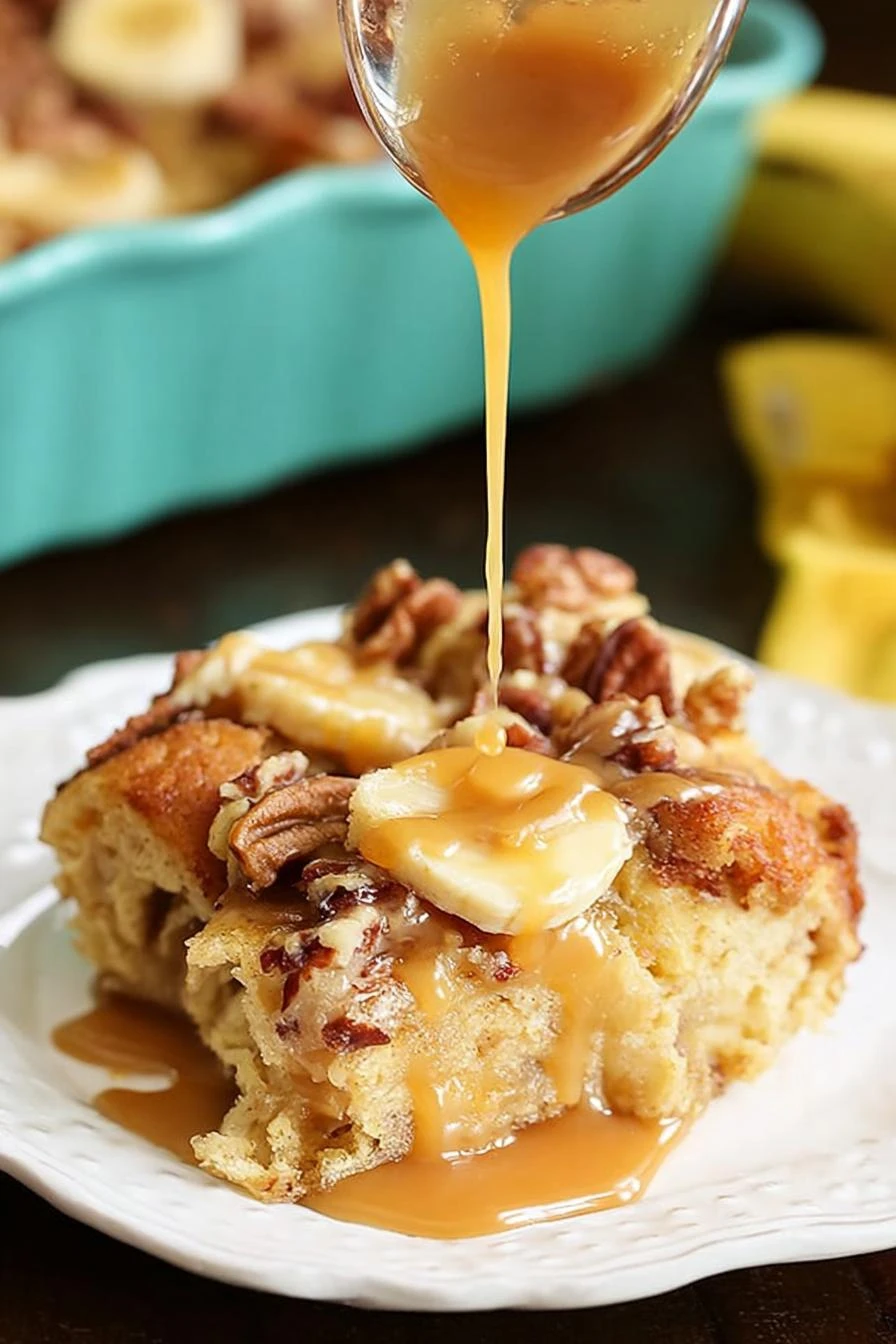 Tastes like dessert but honestly feels like comfort food. Warm bread soaked through, bananas going soft, pecans adding crunch that doesn’t quit. The caramel sauce hits different—salty cuts through all the sugar in a way that just works. Makes 48 minutes in the oven feel worth it. Leftovers are better the next day, maybe because the flavors settle overnight. Brioche instead of regular bread means it doesn’t turn into mush. One pan. Done.